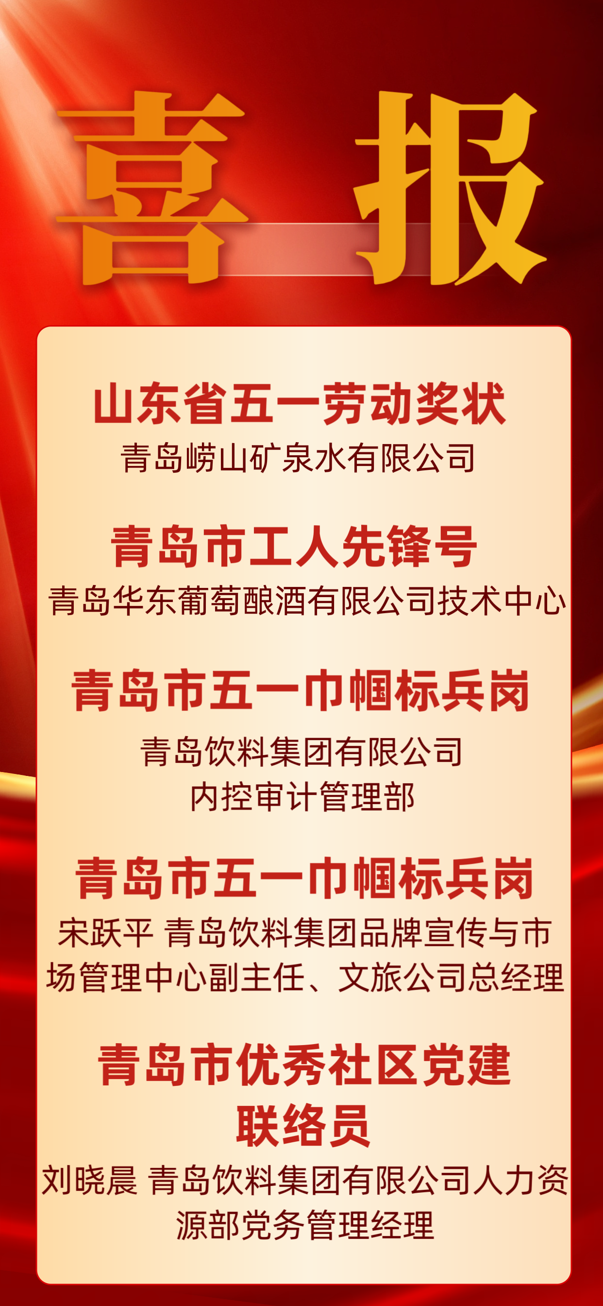 喜報!青島飲料集團榮獲省、市級多項榮譽